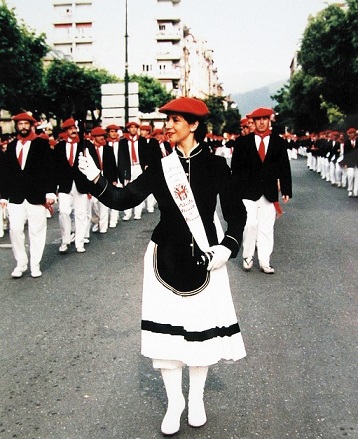 Año 1992. Maite Zubillaga Siguero. Elegida Cantinera Escolta de Caballería del Alarde de Hondarribia en 1992 fuente » Bidas0an «