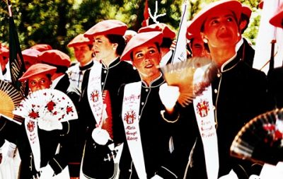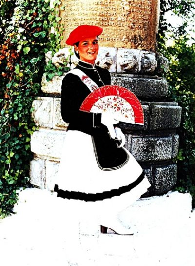 Año 1991. Mª Angeles Blanco Tocado. Elegida Cantinera de la Compañía Ventas del Alarde de San Marcial de Irún en 1991 fuente » Bidasoan «