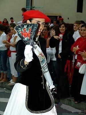 Año 2005. Agurtzane Jauregui Villate. Cantinera de la Compañía Pueblo delo Alarde de Hondarribia tras el abanico en el año 2005.