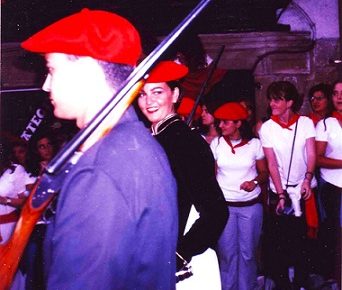 Año 1998. Marta del Valle Sonsierra. Cantinera de la Compañía Mixta del Alarde de Hondarribia mirada en el año 1998 fuente Aingeru Jauna
