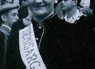 Año 2007. Ainara Azcona Zuzaya. Cantinera de la Compañía San Miguel del Alarde de san Marcial de Irún momento Revista de Armas del año 2007.