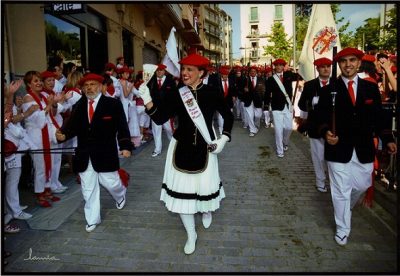 Año 2008. Ainara Calvo Etxarte. Cantinera de la Compañía Bidasoa del Alarde de San Marcial de Irún en la bajada de la iglesia del año 2008.