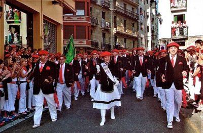 Año 2005. Ainhoa Barahona Varela. Cantinera de la Compañía Ama Shantalen del Alarde de San Marcial de Irún bajando hacia la Iglesia en el año 2005.