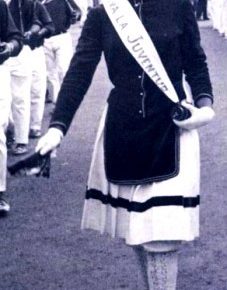 Año 2024. Ainhoa Lorenzo del Campo. Cantinera de la Compañía Semisarga del Alarde de Hondarribia en el zapatero 2024