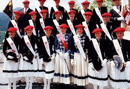Año 2023. Aintzanae Galarza Albistur. Cantinera de la Batería Artillería del Alarde de San Marcial de Irún vistiéndose en el año 2023