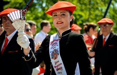 Las cantineras de Caballería, Ane Miren García y Artillería, June Grijalba. Ya en sus monturas, después del almuerzo, listas para subir al monte. Año 2019. Fotografía de Maribel Iparraguirre.