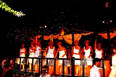 El Burgomaestre de Hondarribia Patxi Goikoetxea. Seguido de su Estado Mayor, saludando en la subida de la Calle Mayor. Fotografía de Maialen Cueto. Año 2012.