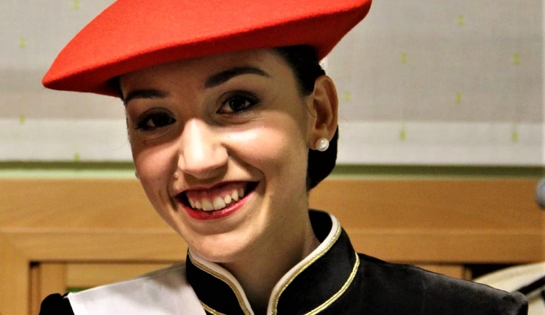 Año 2022. Alba Pérez Parra. Cantinera de la Compañía de Ventas del Alarde de San Marcial de Irún en el año 2022.