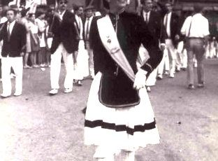 Año 2011. Alexandra Sánchez Martínez de Iturrate. Cantinera de la Compañía Olaberria del Alarde de San Marcial de Irún saludando 2011.