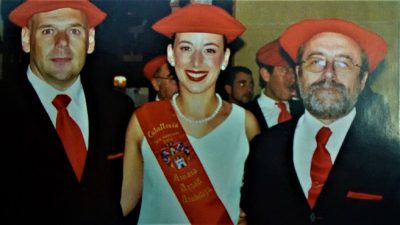Año 2006. Amaia Arzak Arabolaza. Cantinera de la Escolta de Caballería en la presentación de Cantineras junto J.L.Cueto ( Capitán ) y J.M.González ( Sargento ) en 2006