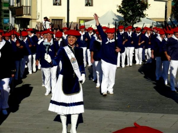 Año 2011. Amaia Lekuona Estomba. Cantinera de la Compañía Gora Arrantzale Gazteak del Alarde de Hondarribia desfilando en 2011.
