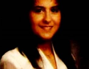 Año 2002. Amaia Marquez Méndez. Cantinera de la Compañía Meaka del Alarde de San Marcial posando en el año 2002.