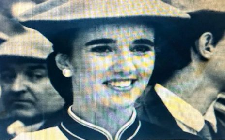 Año 2004. Amaia Martiarena Ayestaran. Cantinera de la Compañía Ventas del Alarde de San Marcial de Irún en la subida de la Iglesia en el 2004.