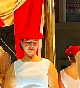 Año 1991. Amaia Salinas Arbelaiz. Fue Cantinera de la Compañía Akartegi, del Alarde de Hondarribia, en el año 1991.