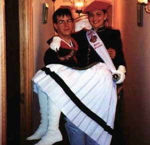 Año 2014. Amets Ugarte Jauregi. Cantinera de la Compañía Olaberria del Alarde de San Marcial de Irún en la Revista de Armas del 2014.