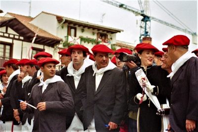 Año 2005. Ana Busto Vega. Cantinera de la Tamborrada del Alarde de Hondarribia en esta imagen rodeada de miembros de Tamborrada en el 2005.
