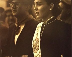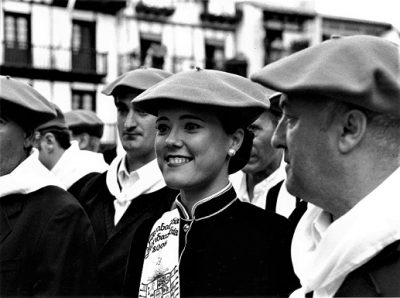 Año 2005. Ana Busto Vega. Cantinera de la Tamborrada del Alarde de Hondarribia en la Plaza de Armas en el año 2005.