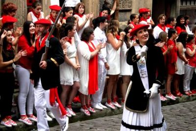 Año 2017. Ana Sarasola Iguiñiz. Cantinera de la Compañía Olearso del Alarde de Hondarribia, en la Calle Mayor en el año 2017.