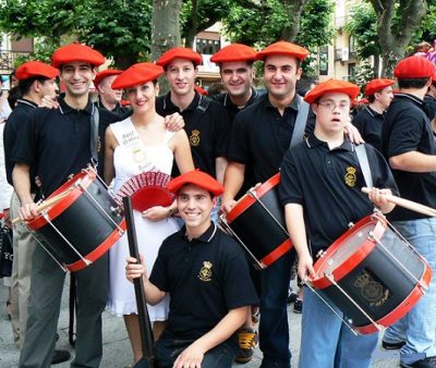 Año 2008. Arantza Alapont Valenciano. Cantinera de la Compañía Real Unión del Alarde de San Marcial de Irún posando con sus amigos en el año 2008.