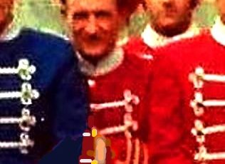 Año 2003. Arantza Berrotaran Otegi. Cantinera de la Compañía Montaña del Alarde de Hondarribia descendiendo la calle Mayor en 2003