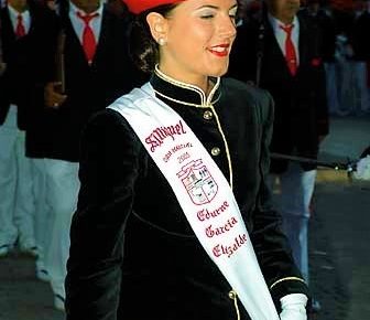 Año 2018. Arantzatzu Tellería Casado. Cantinera de la Escolta de Caballería del General del Alarde de San Marcial de Irún, en la Revista de Armas del 2018.