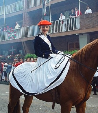 Año 2002. Auxili Flores Campos. Cantinera de la Batería de Artillería del Alarde de Hondarribia en Damarri 2002