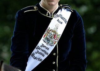 La Banda de Música con su cantinera Uxue Sansiñena. Subiendo en silencio la Cuesta San Marcial a los sones de la Tamborrada. Fotografía Íñigo Salcedo.