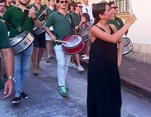 Cantinera de la Banda de Música de la Ciudad de Hondarribia. Zyanya Eceiza Iridoy. Sonrisa de Cantinera en el Alarde de la mañana. Aristi Fotógrafo. Año 2019