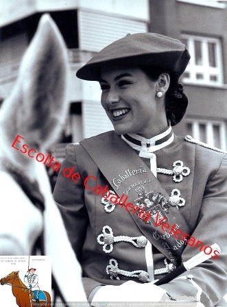 Año 1997. Barbara Amadoz Sunsundegui. Cantinera de la Escolta de Caballería del General del Alarde de San Marcial sonriendo en 1997