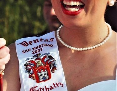 La cantinera de la Batería de Artillería de Irún June Grijalba Santos. Con mucho más que júbilo en la bajada a la Iglesia. Fotografía Banga Lore. Año 2019.