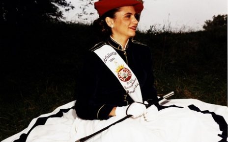 Año 2005. Blanca Arche Iglesias. Cantinera de la Compañía Mixta del Alarde de Hondarribia entrando en la Plaza de Armas en el año 2005.