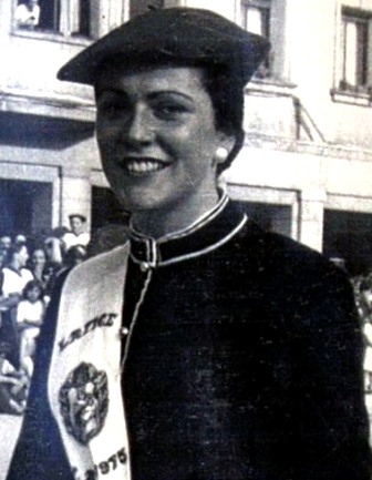 Año 1975. Mª Juncal Aquizu. Fue Cantinera de la Compañía Lapice, del Alarde de San Marcial de Irún, en el año 1975.