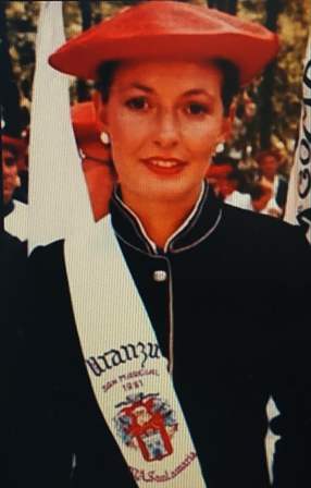 Año 1981. Mª Ángeles Santamaria Estomba. Fue Cantinera de la Compañía Uranzu, del Alarde de San Marcial de Irún, en el año 1981.