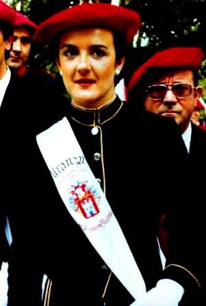 Año 1977. Mercedes Aguirre Muñoz. Fue Cantinera de la Compañía Uranzu, del Alarde de San Marcial de Irún, en el año 1977.
