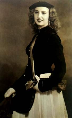 Año 1948. Amparo Txapartegi Irastorza. Fue Cantinera de la Compañía Ventas, del Alarde de San Marcial de Irún, en el año 1948.