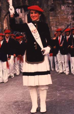 Año 1981. Arantxa Arzuaga Arocena. Fue Cantinera de la Copañía Jaizubia, del Alarde de Hondarribia, en el año 1981.