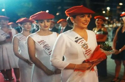 Año 2014. Carla Torres Fernández. Cantinera de la Compañía Belaskoenea del Alarde de San Marcial de Irún en los ensayos del año 2014.