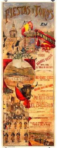 Año 1900. Cartel de Fiestas de toros en Hondarribia, podemos ver en la parte baja, la Escuadra de Hatxeros .