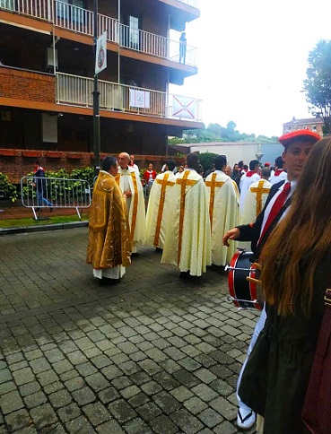 Año 2024. ElCabildo eclesiástico una vez incorporado al Alarde de Hondarribia al paso por Damarri en el año 2024 fuente archivo