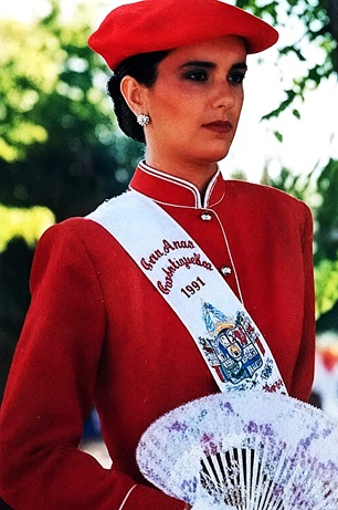 Año 1991. Mª José Zubillaga Olasoaga. Fue Cantinera de la Compañía Gora Ama Guadalupekoa, del Alarde de Hondarribia, en el año 1991. fuente Cia Gora Ama Guadalupekoa