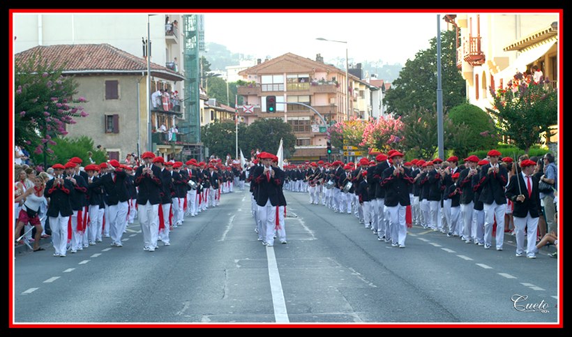 Txibilitos de la Compañía Mixta. En la Calle Mayor finalizando el Alarde con el Zapatero. Fotografía de Maialen Cueto. Año 2012.