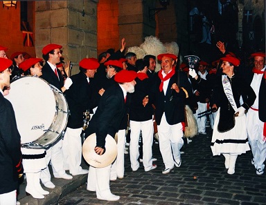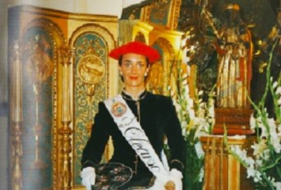 Año 1996. Pili Anuncibay Kanpandegi. Cantinera de la Compañía Olearso del Alarde de Hondarribia en el zapatero 1996 fuente P. Anuncibay