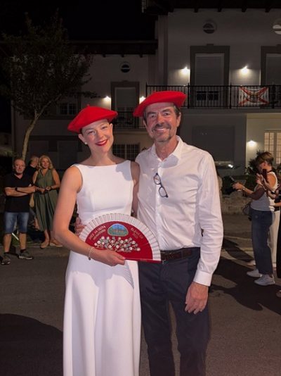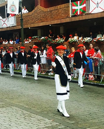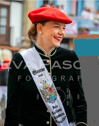 Año 2025. Ines La Casta Aramburu. Elegida Cantinera de la Compañía Olearso del Alarde de Hondarribia en 2025 fuente H. Alardea