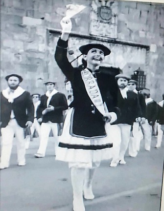 Año 1974. Amaia Garcia Lapitz. Fue Cantinera de la Tamborrada del Alarde de Hondarribia, en 1974. La vemos en esta imagen. fuente Tamborrada.
