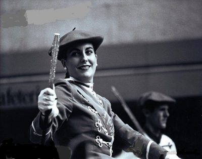 Año 1993. Amaia Txapartegui Crespo. Cantinera de la Escolta del Caballería del General del Alarde de San Marcial sonriendo en 1993 fuente A. Txapartegui