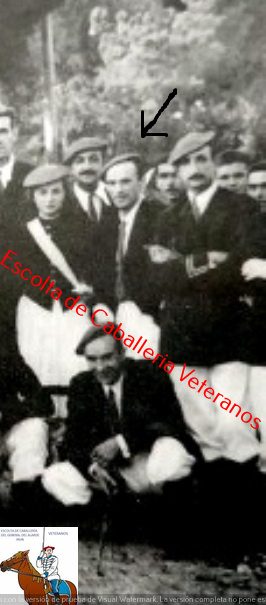 Año 1942. Ramon Alvarez. Fue Capitán de la Escolta de Caballería del General del Alarde de San Marcial de Irun , los años 1942 y 1944 hasta 1946 . Le vemos señalado por la flecha. foto archivo
