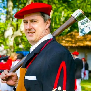 Año 2024. Juan José Martínez. Cabo de la Escuadra de Hacheros del Alarde de San Marcial de Irún desde 2017 fuente Escuadra Hacheros