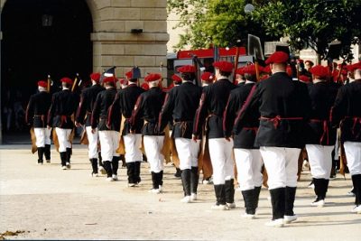 Año 1998. La escuadra de Hatxeros del Alarde de San Marcial de Irún iniciando su entrada en el paseo Colon el año 1998 fuente Escuadra Hatxeros