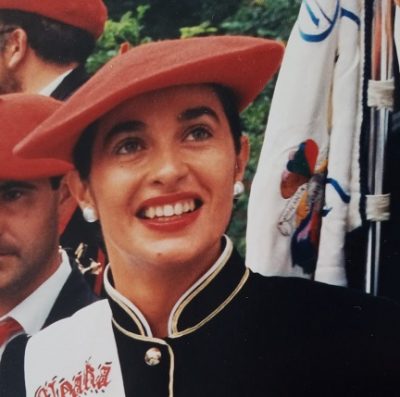 Año 1993. Mª Angeles Zabalo Susperregui. Elegida Cantinera de la Compañía Meaka del Aarde de San Marcial de Irún en 1993 fuente » El Irunés «