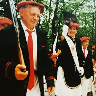 Año 1994. Rosa Mª Zabalo Urtxegi. Cantinera de la Compañía Meaka del Alarde de San Marcial de Irún en el monte en 1994 fuente R. Zabalo